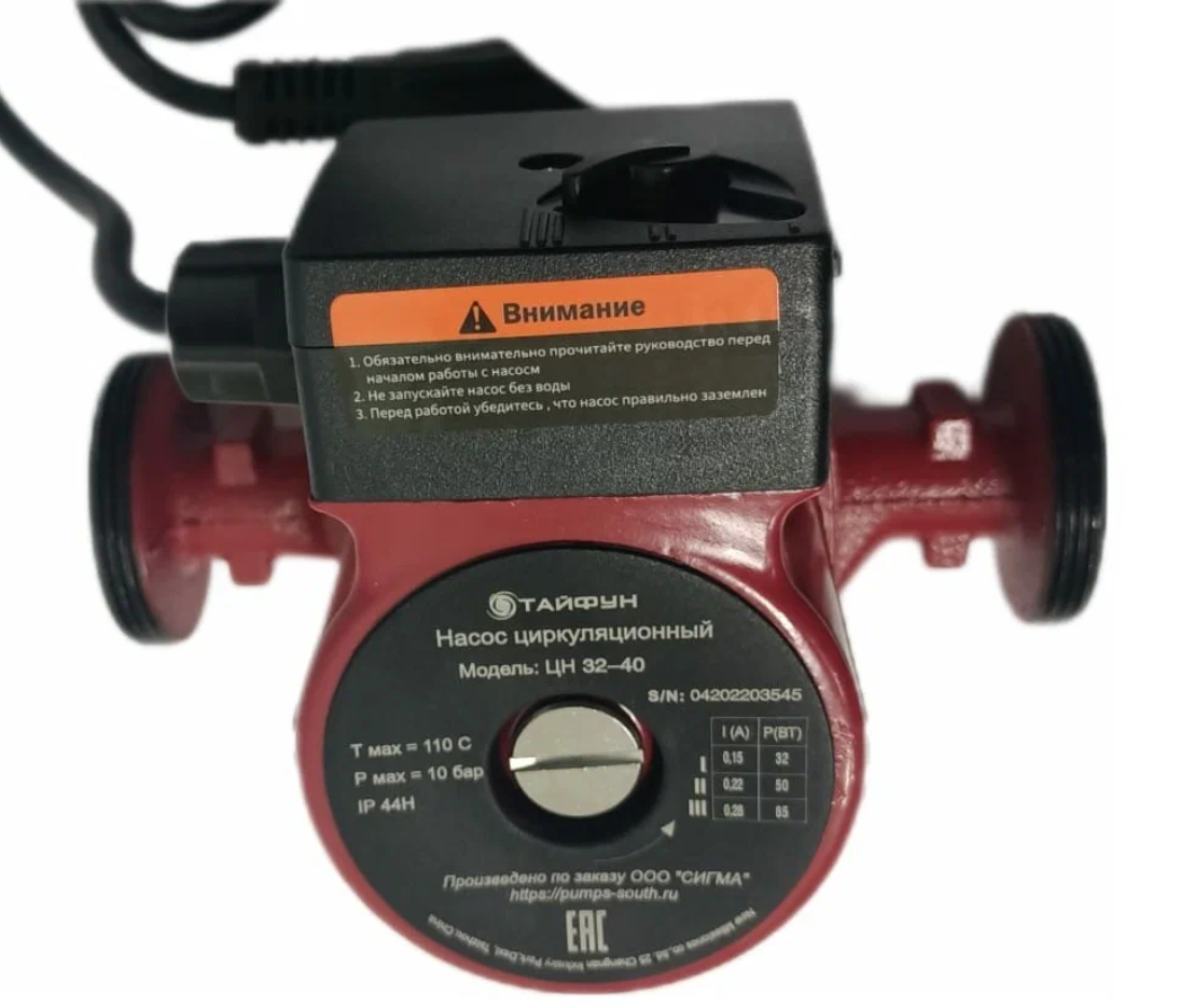 долговечность насоса Тайфун обеспечивается благодаря алюминиевому корпусу электродвигателя, чугунному корпусу насосной части, а также защищенному статору;